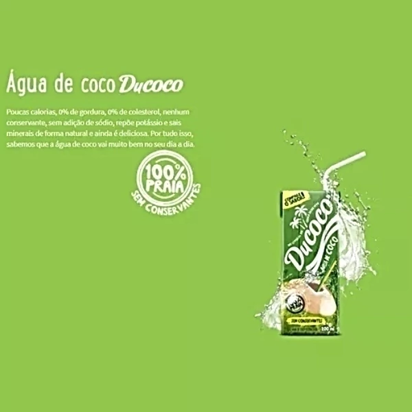 Água de Coco Ducoco, Com poucas calorias, 0% de gordura, 0% de colesterol, nenhum conservante, sem adição de sódio, repõe potássio e sais minerais de forma natural e ainda é deliciosa. Por tudo isso, sabemos que a água de coco vai muito bem no seu dia a dia.